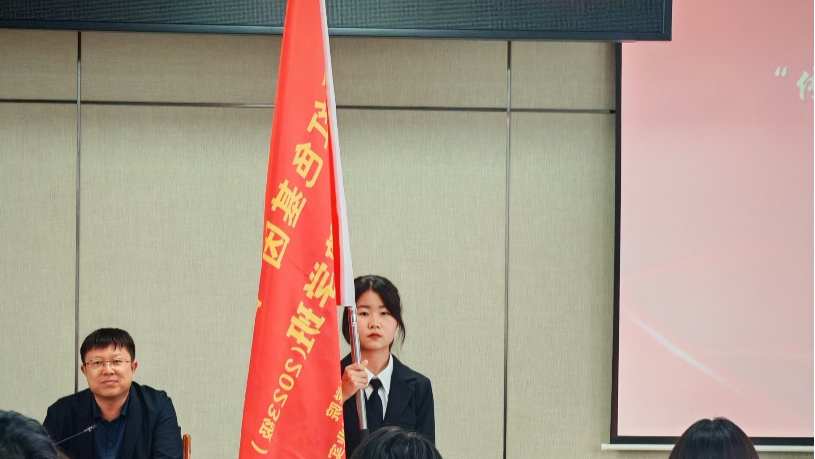 开班仪式最后进行了班旗授旗仪式。2023级本科生樊婷玉同学作为旗手接旗。旗帜猎猎招展,凝聚着勠力同心、携手并进的团结信念;吹响了志凌青云、步履铿锵的出征号角。