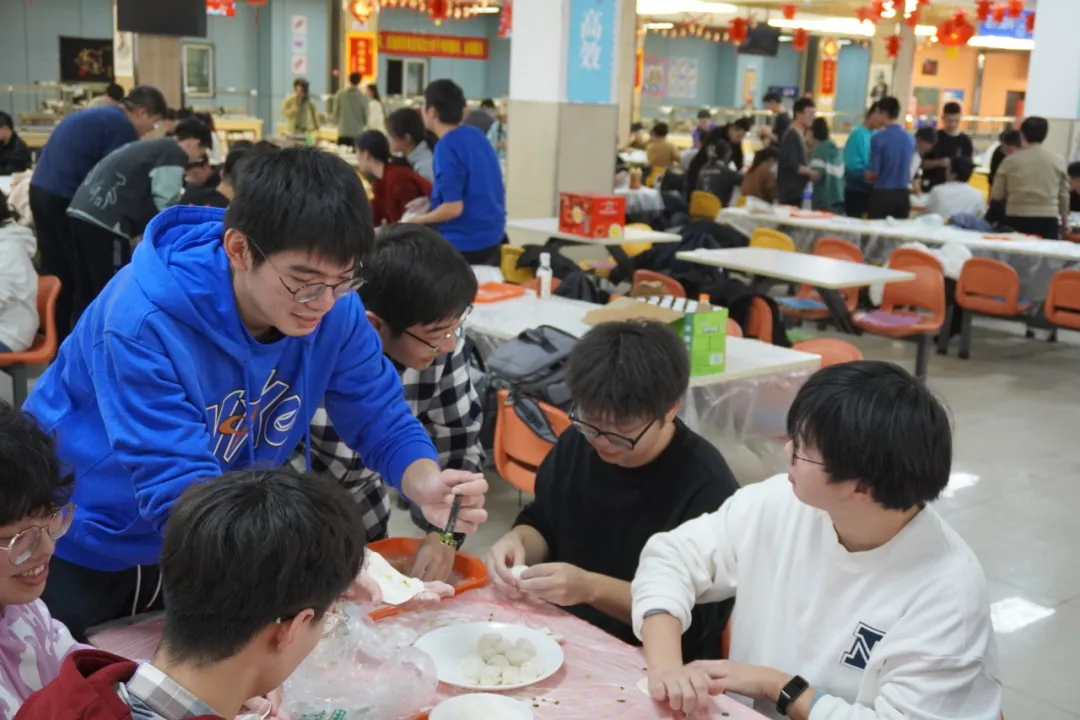 活动还未开始,餐厅工作人员便在后厨早早地忙碌起来,为同学们准备面团和饺子馅。活动现场,同学们欢聚一堂,一起感受那份深厚的文化底蕴和温暖的人间烟火气。大家围在桌边一边包饺子,一边分享生活趣事,互相切磋着手艺,交流着自己包饺子的“独家秘籍”,现场热闹而又温馨。不擅长包饺子的同学也在大家的示范教学下,认真学习包饺子技艺。经过1个多小时的劳动协作,一个个饱含着幸福和温暖的饺子整齐地排列在餐桌上。同学们把包好的饺子送到餐厅后厨烹饪,待煮好的饺子端至大厅,浓郁的饺香顷刻四溢。同学们津津有味地享受着自己的劳动成果,美味流窜于唇间,温暖环绕于心中。