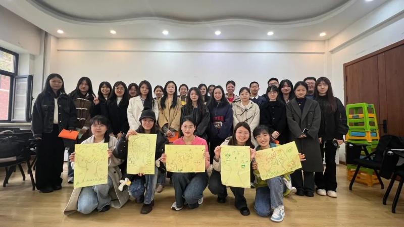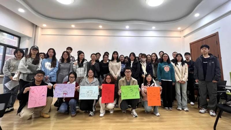 最后,大家共同创作出属于小组的“团体树”。经过组内的“头脑风暴”,各组成员大胆发挥想象力,在团体树上开出了属于自己的绚烂之花。