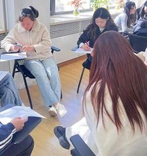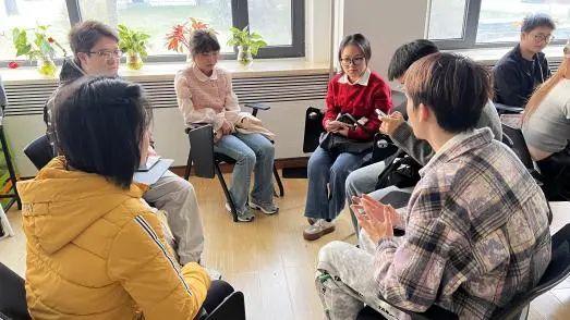 活动伊始,员工朋辈心理辅导员杨蕙嘉总体上介绍了本次心理团辅活动的主题、目标与大致流程,并希望同学们通过全身心的感受和投入,从中获得内在满足和珍贵友情。随后活动开始,现场采取报数方式进行随机分组,以小组为单位进入“我知道”的游戏环节。同小组同学围坐在一起,讨论朋辈给出的话题并进行扩充,大家从自己的名字含义、家乡美食到爱好特长再到新学期的体验感受,使同学们关注自己的同时也关注了他人,活跃了现场气氛,增强了团体成员间的熟识。