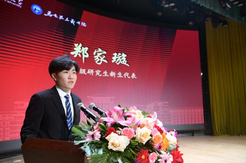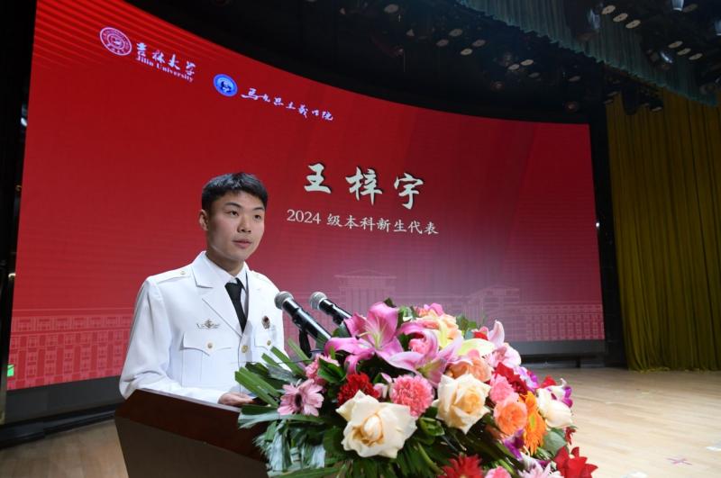 随后,2024级本科生新生代表王梓宇和2024级博士研究生新生代表郑家璇分别进行发言。王梓宇同学表示,三年军旅生涯使他深刻领悟到马克思主义理论是塑造理想信念,铸就时代新人的关键力量。他坚信,随着长期深入的学习,永利yl23411的学子们定会拥有充盈而坚定的内心世界,在面对困难时毫不退缩、勇往直前。他们对马克思主义的忠诚信仰,将在理论与实践的交融中熠熠生辉,于知行合一中得到生动诠释。郑家璇同学谈到,成为公司人,意味着我们拥有了成长精进的自信与底气,意味着我们肩负了传承薪火的责任与使命,意味着我们获得了迎难而上的勇敢与韧性。这就要求我们必须将“旗帜领航、铸魂育人”的院训转化为价值信条与人格追求,在马信马,在马言马,时时刻刻以一名公司学子的标准激励和要求自己。