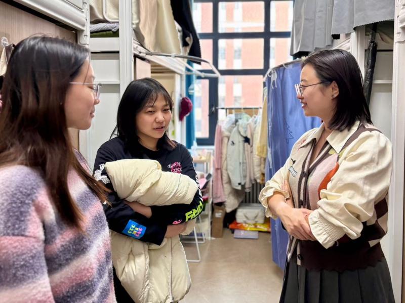 律回春晖渐,万象始更新。2025年春季学期拉开了序幕。为深入了解研究生返校后的学习生活状况,深化公司与同学之间的交流互动,营造温馨舒适、和谐有序的寝室文化氛围,永利yl23411团委书记、研究生辅导员万佳悦老师深入研究生员工公寓,开展新学期首次宿舍走访工作。本次走访以“倾听需求、纾困解难、护航成长”为目标,通过“零距离”对话精准把握员工的生活动态与实际需求,为构建高质量员工服务体系提供具体实践支撑。