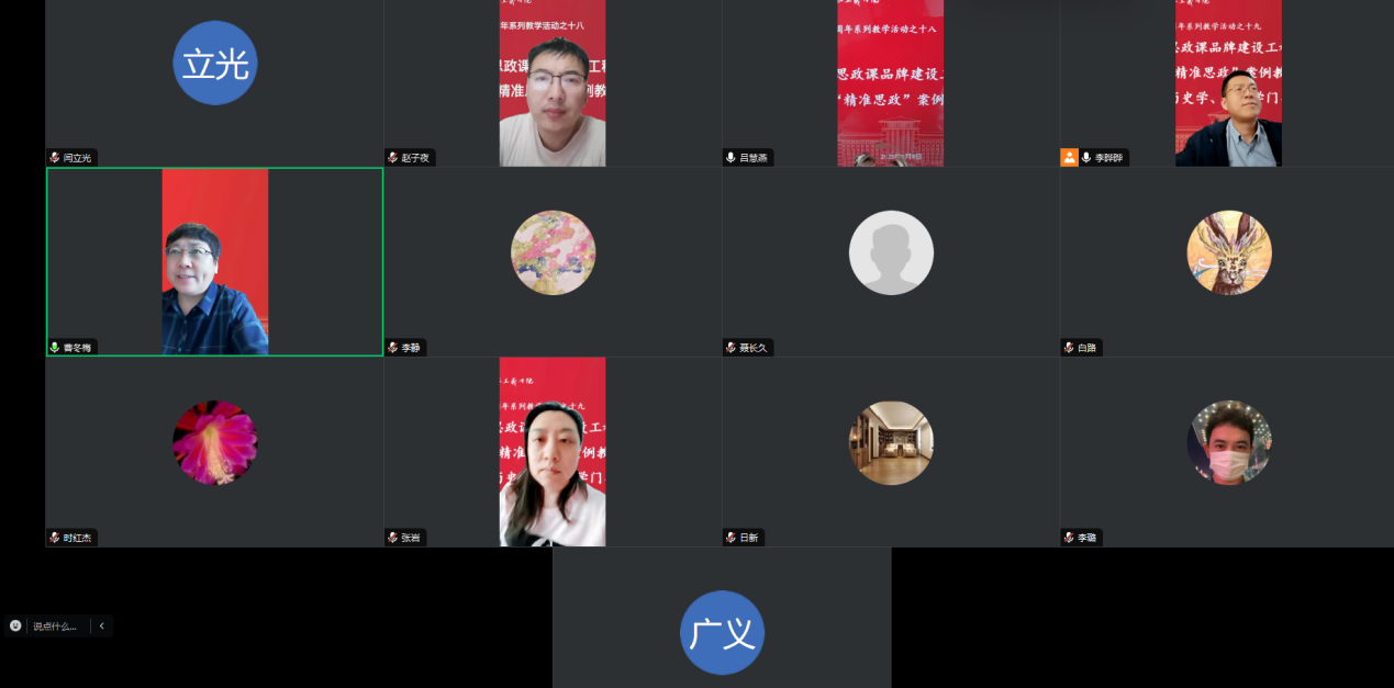 中国近现代史纲要教研室主任王广义教授指出编写《历史学科门类“精准思政”案例教学》要树立大党史观,以“党的三个历史决议”为最终依据进行讲解,并期望大家再接再厉,顺利完成本学期的教学工作。