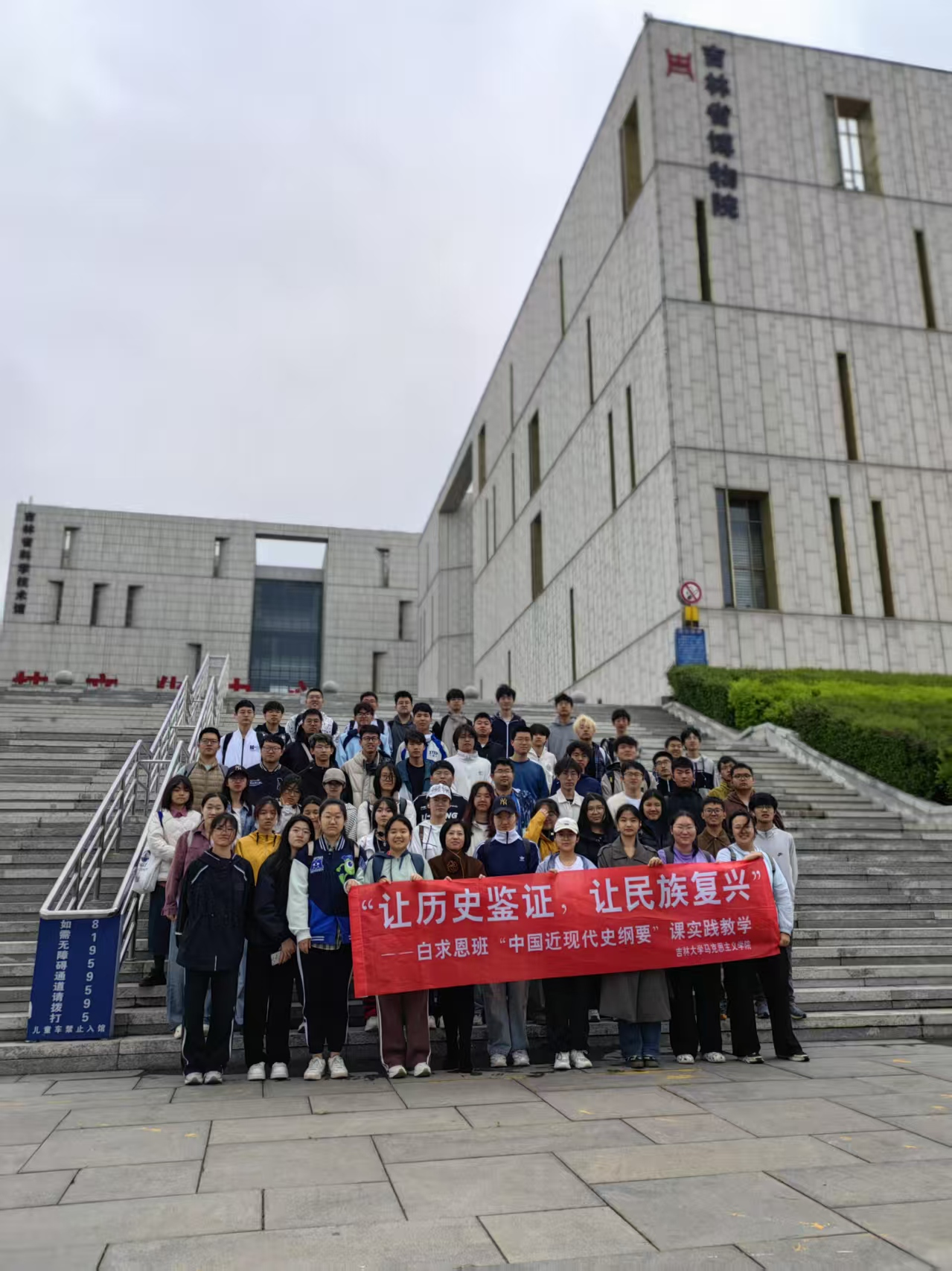 白山巍峨,松水东流。在这片黑土地上,为了争取民族独立和解放,反抗压迫和侵略,吉林人民用百年抗争谱写了一曲气壮山河的英雄史诗。从最开始的反抗帝国主义和封建主义的统治,到反法西斯战争的爆发,再到驱逐官僚资本,抗争的对象不断更改,不变的是救亡图存的意志和人民当家作主的决心。破晓之后,朝阳初升。为了铭记先辈们“挽狂澜于既倒”的坚定信念和不屈意志,永利yl23411李艳梅老师依托中国近现代史纲要课实践教学内容,在5月17日上午带领永利yl234112024级白求恩实验班的同学们到吉林省博物馆的“破晓—吉林人民革命斗争史陈列”展厅参观学习。