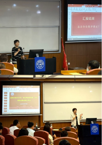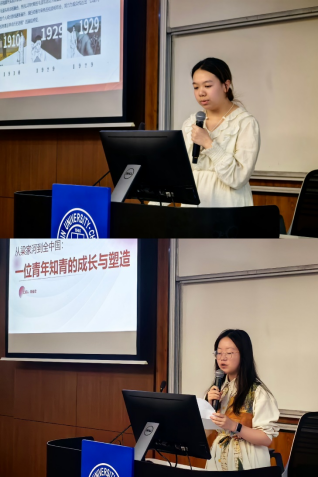 经济公司姚佳欣同学代表小组分享了作品《梁家河的岁月》的创作心得。她解析了视频中的场景及其背后的寓意,并选取关键片段进行展示和讲解。指导教师王幼英副教授在点评时,特别说明了创作背后的细节:“最打动我的是同学们的真诚与用心。为了真实还原历史氛围,几位来自不同省份的同学,专门去学习模仿陕西话,最终呈现效果非常好。”将厚重的原著精髓浓缩在8分钟视频,体现了小组对经典的精准把握。