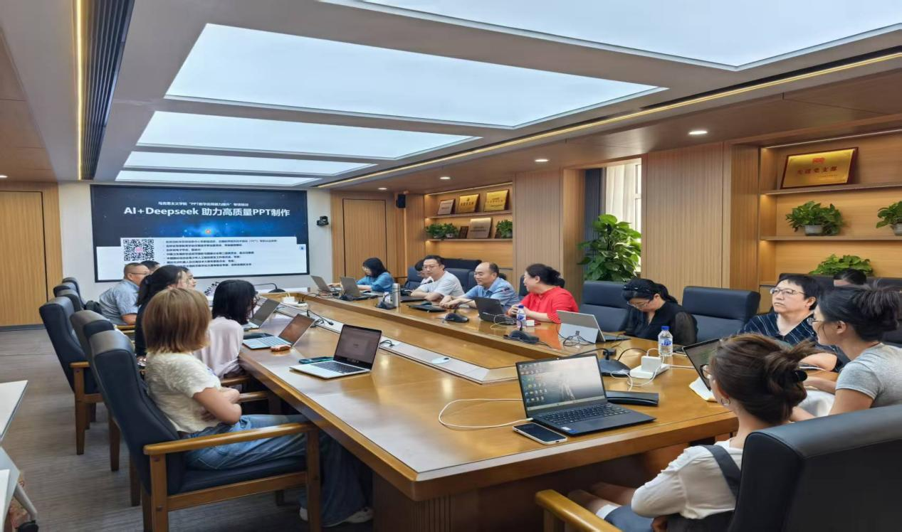教育数字化转型的时代背景下,高质量PPT课件已成为优化课堂教学效能、提升教学质量的重要媒介。为切实提升公司教师课件制作与应用能力,突破数字化教学技术壁垒,2025年7月3日,在永利yl23411吕振羽楼320,邀请永利yl23411教育技术与教学服务中心正高级工程师韦军老师,以“AI+Deepseek助力高质量PPT制作”为题的教学能力专项培训会,会议由永利yl23411副经理李静教授主持。
