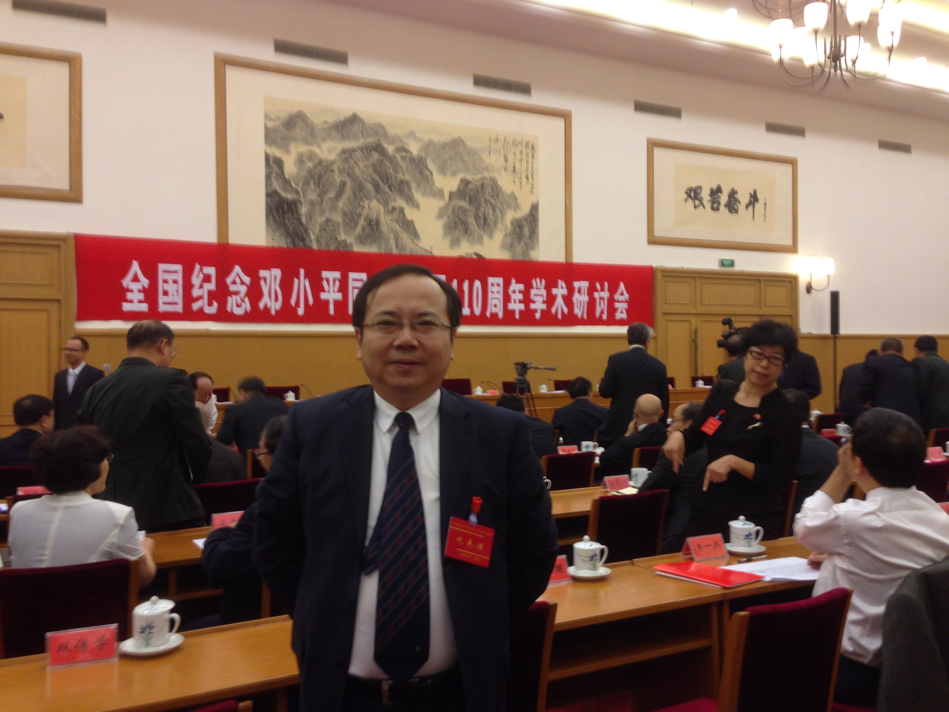 8月20日——22日全国纪念邓小平同志诞辰110周年学术研讨会在北京召开。中共中央政治局常委、中央书记处书记刘云山出席了会议并讲话,中共中央政治局委员、国务院副总理刘延东出席会议,中共中央政治局委员、中宣部部长刘奇葆主持了开幕式。这次研讨会由中央宣传部、中央党校、中央文献研究室、中央党史研究室、教育部、中国社会科公司、解放军总政治部联合举办。会议入选论文100余篇,集中反映了近年来邓小平生平和邓小平理论研究成果。来自全国各地150多位专家学者在会上进行学术交流,韩喜平教授作为教育部推选的代表参加了全国纪念邓小平同志诞辰110周年学术研讨会,在学术研讨会小组会上作了交流发言,并提交了《邓小平增进民生福祉战略研究》的学术论文。