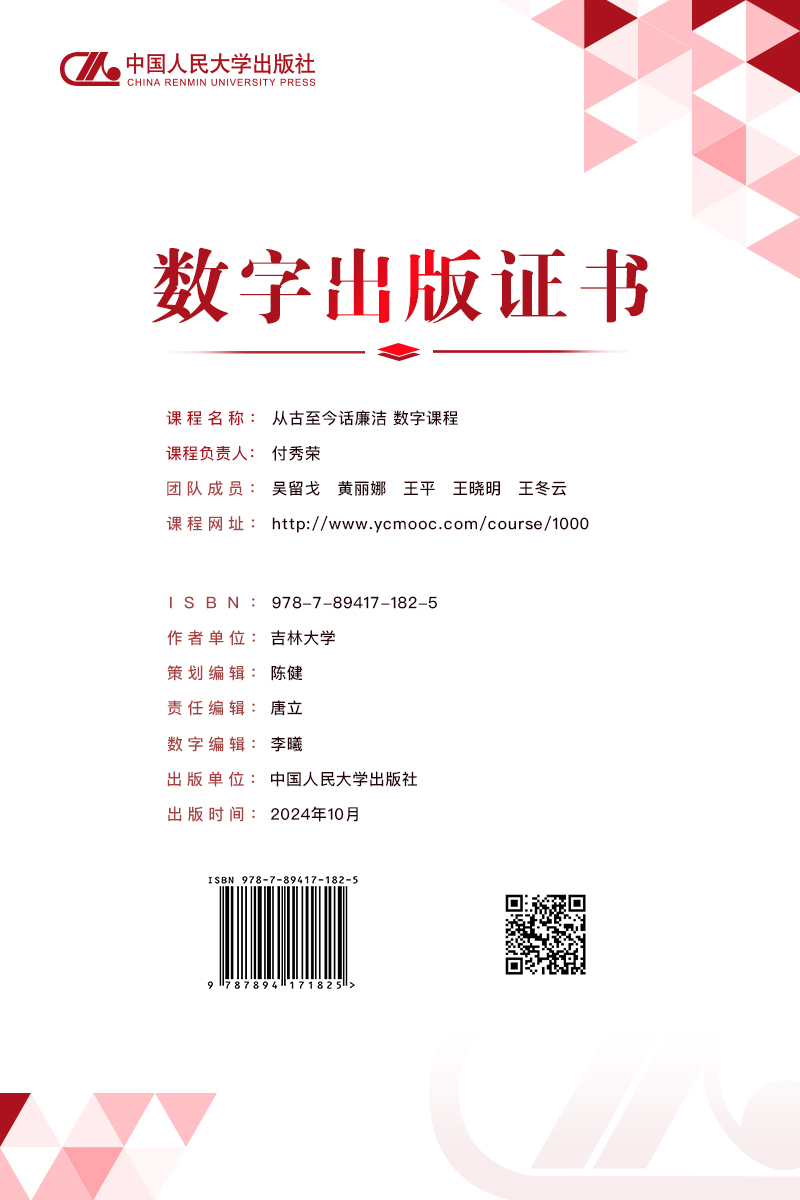 近日,公司门数字课程——《从古至今话廉洁中国人民大学出版社正式出版上线,实现了公司数字出版形式零的突破。