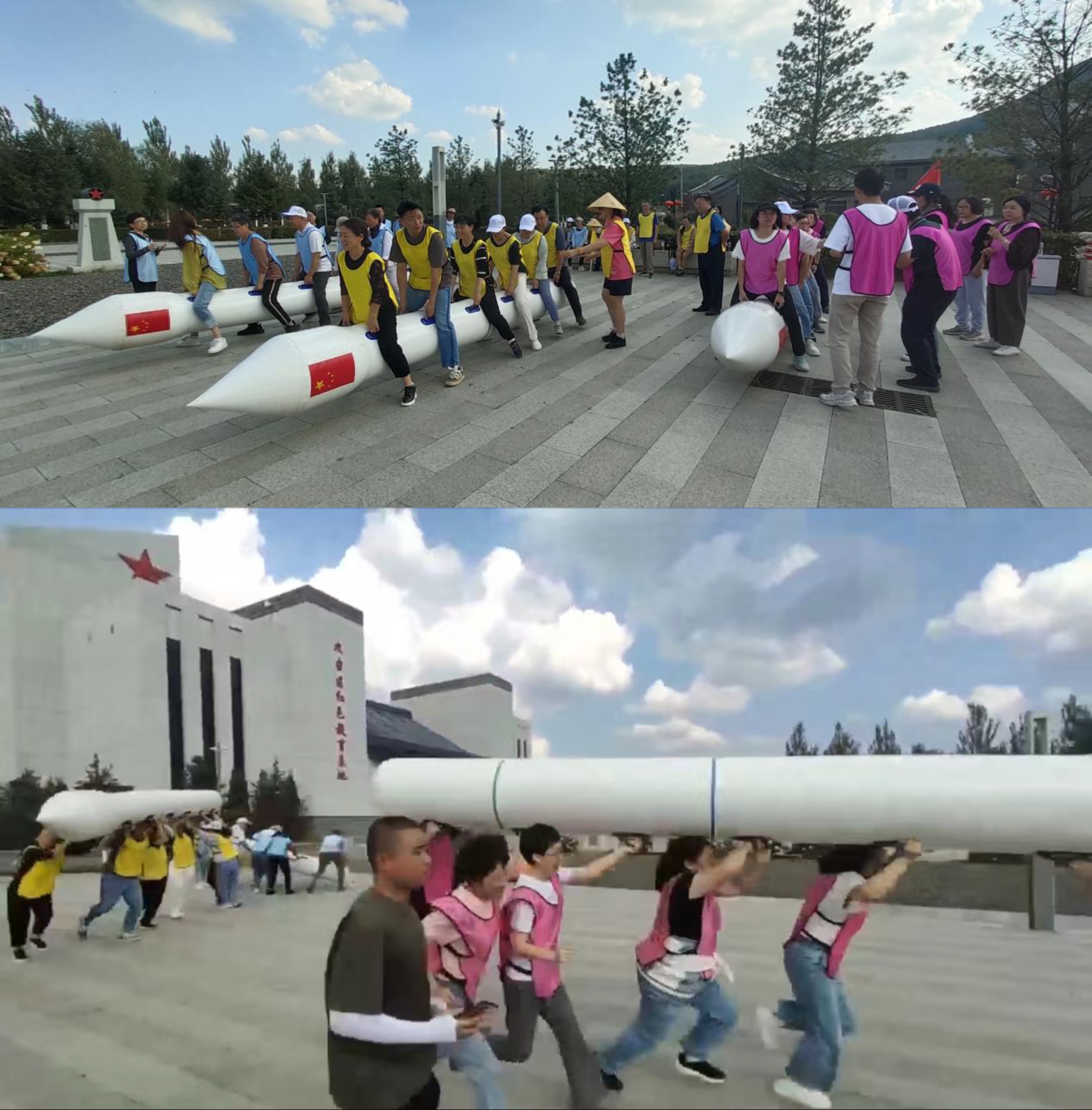 寻宝活动后是激情四射的拓展训练环节。参加团建的老师分成三组进行了拓展训练活动,每组由2名院领导、2名行政人员和10名教师组成,因身体原因不能参加拓展的老师加油助威。在“击鼓颠球、疯狂火箭、时代巨轮、草帽连连看”四项比赛中,老师们发挥自身优势,学习他人之长,互相配合,共同完成目标任务,真实地体现了一个团队的团结与协作,沟通与协调,真诚与信赖,激情与挑战的完美统一。大家在“击鼓颠球”中体验到全体成员缺一不可的整体性,互相包容、放平心态、不轻言放弃的精神;在“疯狂火箭”中感受到步调一致的重要性;“时代巨轮”中一人把控方向,一人掌握速度,密切配合才能形成合力的要领;“草帽连连看”活动中要听从指挥,互相协作才能达到“众志成城”。