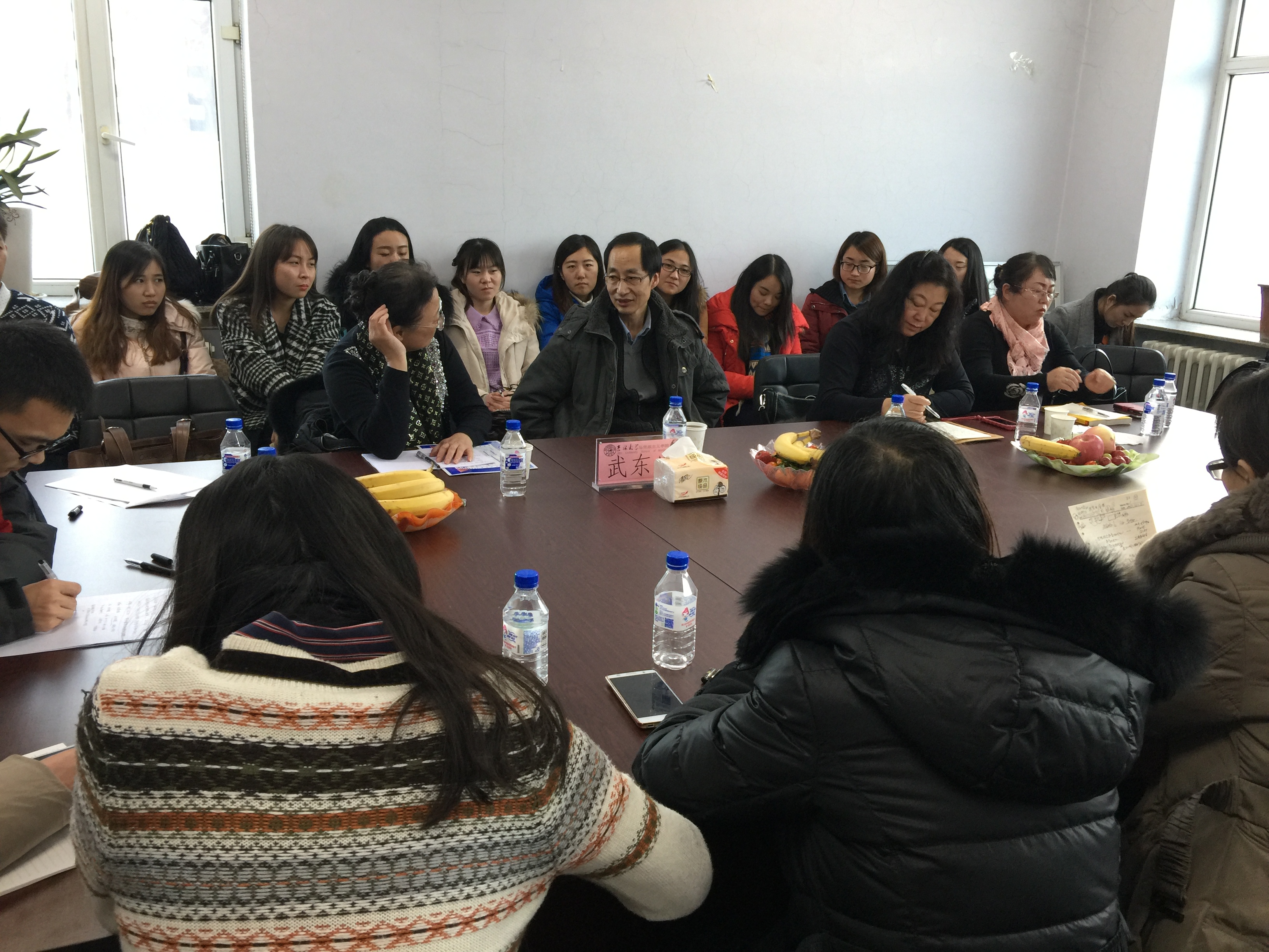 2015年12月5日下午,全国高校马克思主义理论学科研究会副会长、教育部高校思想政治理论课教学指导委员会委员、南开大学马克思主义教育公司武东生教授应邀来公司,与永利yl23411师生进行座谈。座谈会由董丁戈教授主持,思想政治教育专业教师、博士研究生、硕士研究生40余人参加了座谈会。