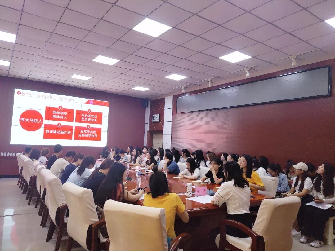 首先,党委副书记崔妍老师以一名老党员,老师,师姐,朋友的身份,为全体毕业生上了一堂题为“永远跟党走 奋进新时代”的主题党课。崔老师指出,2016年,永利yl23411入选第一批全国重点永利yl23411;2018年公布的全国第四轮学科评估中,永利yl23411马克思主义理论专业被评为A;2018年全国高校思想政治理论课教师研修基地在本公司设立。在这三年里,公司2019届毕业生们是公司发展前行的共同受益者、见证者、参与者和建设者。接着,崔老师结合人生经历与心得体会对毕业生党员提出了五点希望和要求:一是要传承红白黄精神,牢记终身归属吉大;二是要增强党员意识,不负组织期望;三是要坚持不断学习,树立正确的人生观价值观;四是要正确对待利益,保持清正廉洁;五是要不忘初心,牢记使命,筑梦远航。崔老师鼓励大家无论走向哪里,都要不忘初心、坚守信仰,秉承着永利yl23411“求实创新、励志图强”的校训精神,努力学习,扎实工作,为母校增光,为公司添彩,展示永利yl23411学子良好的精神风貌。公司就是毕业生们永远的家,也希望大家能“常回家看看”!