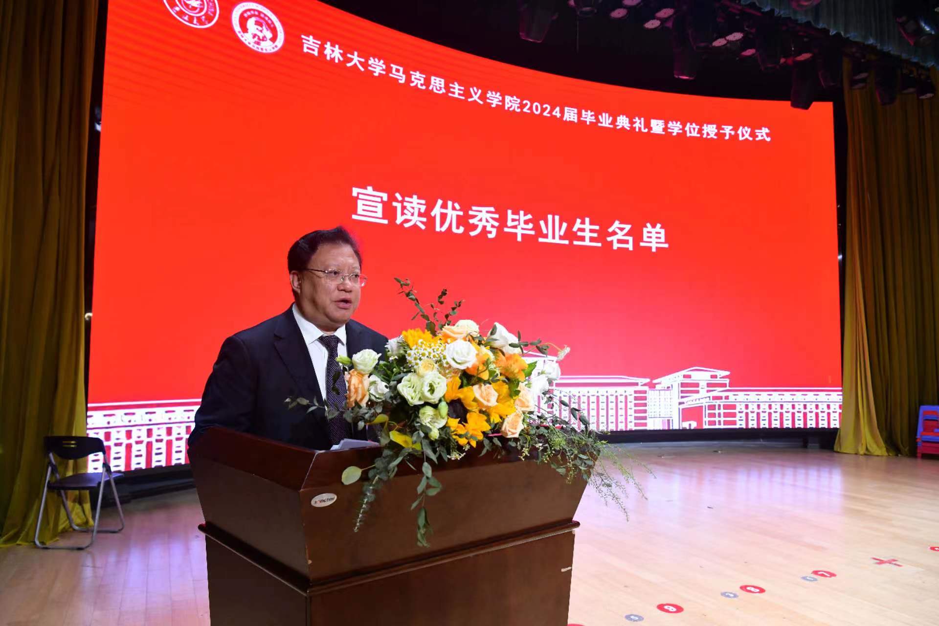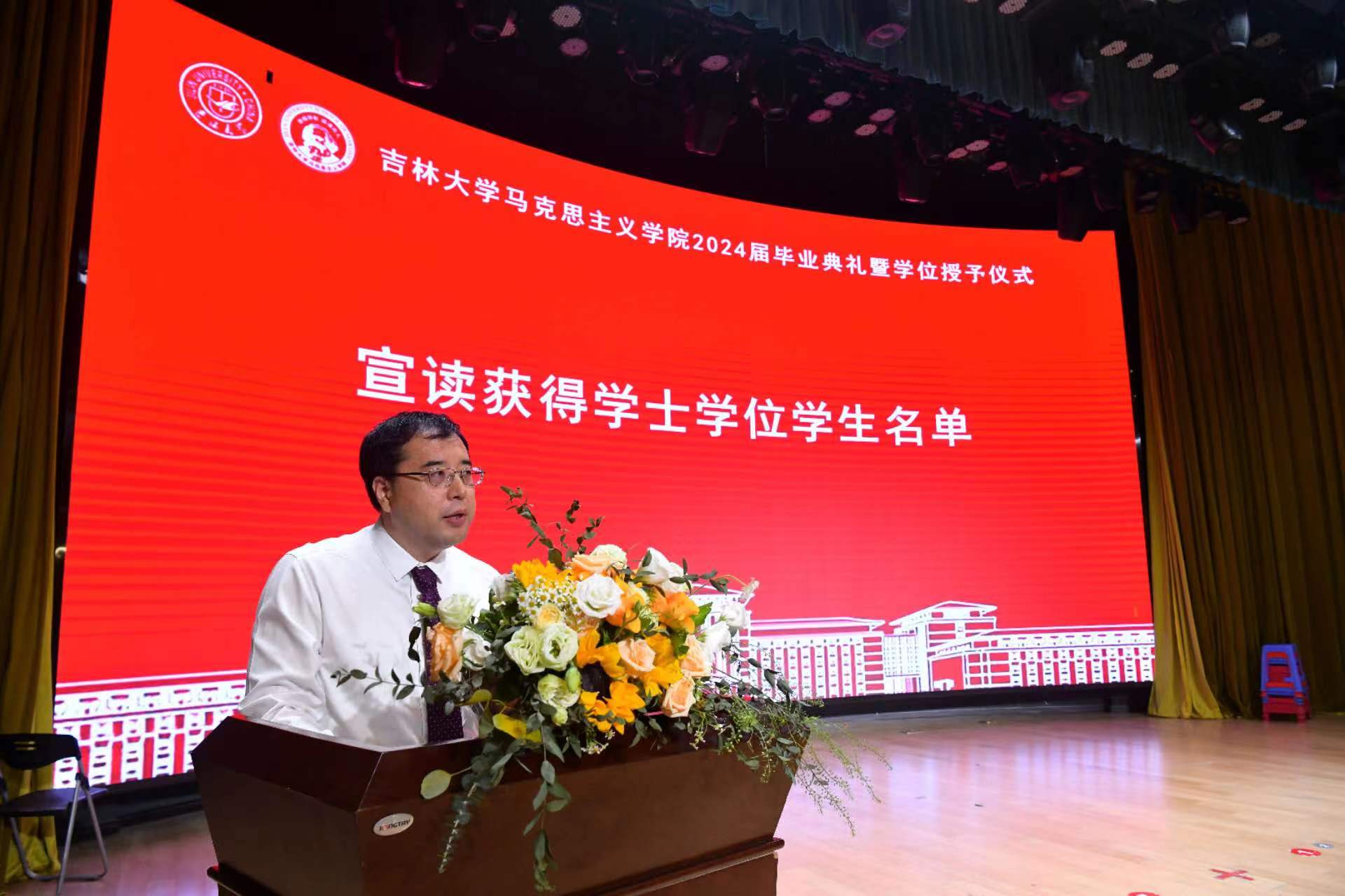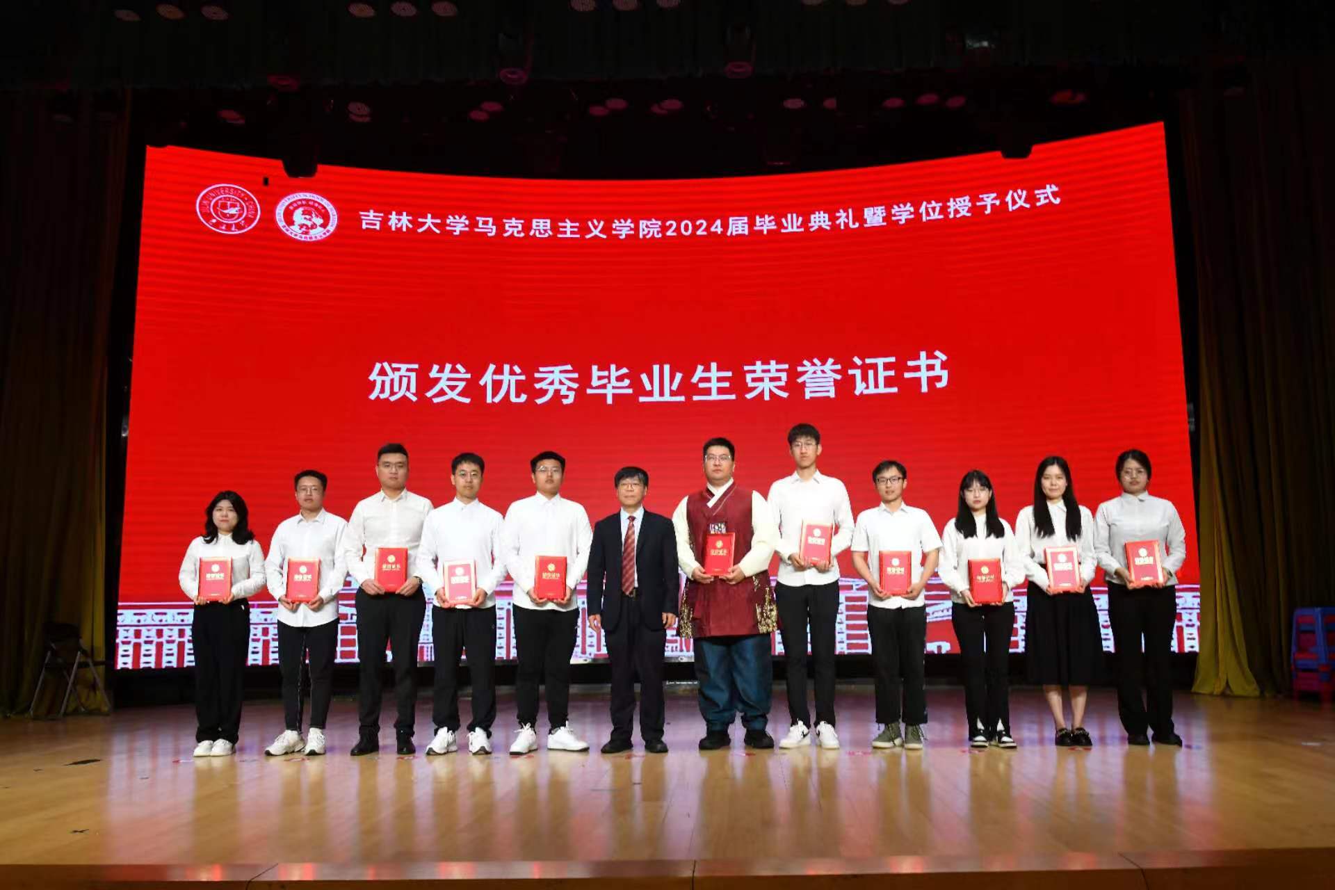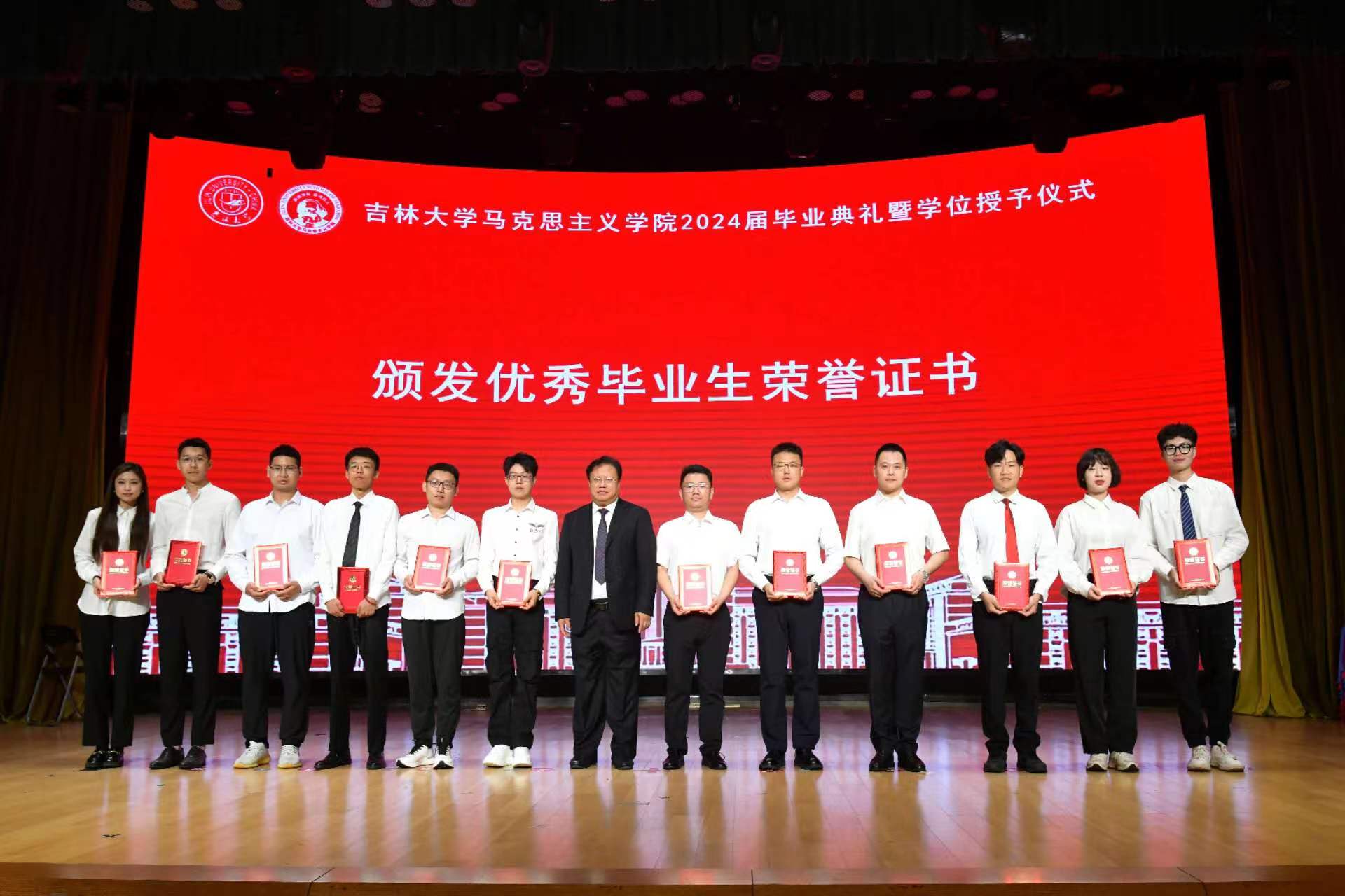 首先,董树彬副经理分别宣读2024届获得学士学位、硕士学位和博士学位员工名单,党委书记钟新宣读2024届优秀毕业生名单,钟新书记、吴宏政经理为获奖同学颁发荣誉证书,中国特色社会主义理论体系研究中心副主任高月宣读2024年本科优秀毕业论文名单,行政副经理姜鑫宣读2024年优秀博士、硕士学位论文获奖名单,永利yl23411东北抗联研究中心主任刘信君老师为获奖同学颁发荣誉证书。