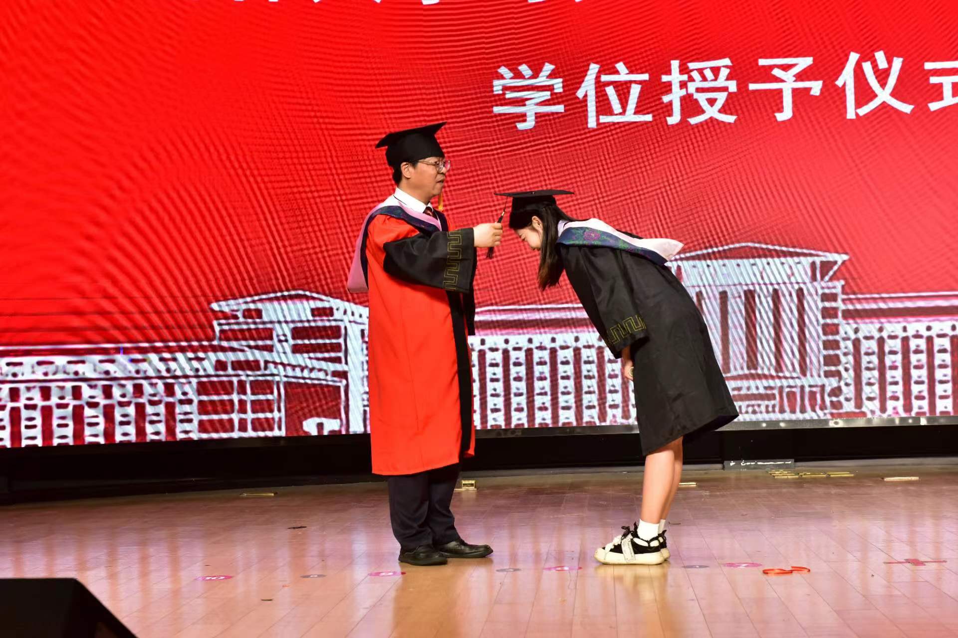 在毕业典礼正式开始前,全体毕业生与公司领导老师在敬信楼前合影留念。随后,在庄严的国歌中,毕业典礼正式拉开帷幕。