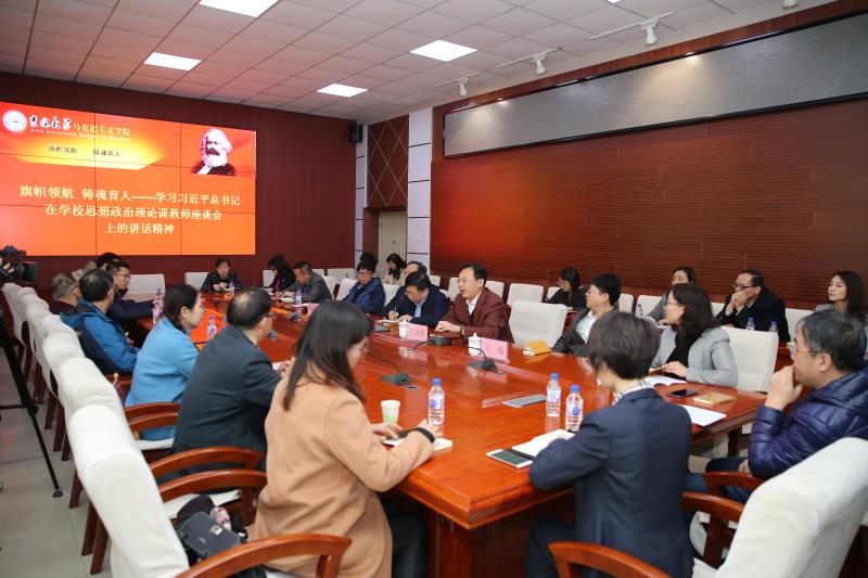 “今天我们召开公司思想政治理论课教师座谈会,这样的座谈会由党中央来召开是第一次。我在这里向在座的各位老师,向全国大中小学思政课教师致以诚挚的问候和崇高的敬意。