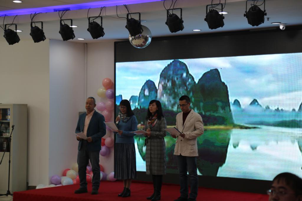 联欢会在优美的歌伴舞《国家》中拉开帷幕。联欢会上,公司七个教研室近百位老师及研究生、本科生共同参演,节目形式多样,精彩纷呈,老师们和同学们用不同的方式表达对新年的祝福。概论教研室的诗朗诵《我爱你中国》饱含深情,表达了公司教师对祖国的深切感情;形势与政策教研室的合唱《相逢是首歌》歌声婉转,展示了老师们真挚的情谊;行政办公室兰去非一支《惊鸿舞》优雅飘逸、引人入胜;基础教研室大合唱《外婆的澎湖湾》曲调优美,使观众在轻快的节奏中回忆起童年时光;研究生教研室盛装合唱《阿瓦人民唱新歌》,极具民族特色,气势恢宏;副经理吴宏政一曲吉他弹唱《外面的世界》引发全场合唱,将联欢会推向高潮;行政办公室的老师为大家带来歌曲串烧《相亲相爱》,携手展现永利yl23411行政人员亲如一家的深厚情感;概论教研室的大合唱《团结就是力量》刚劲有力,表现出公司教师团结一致迎接美好明天的决心;原理教研室杨洪兴老师在联欢会上为大家带来原创诗歌朗诵《新时代的英雄》,文采飞扬、情真意切。此外,形势与政策教研室、研究生教研室分别带来原创三句半,诙谐幽默,引得大家叫好声不断。退休教师庞雅莉和邓如辛也分别带来《彩绸舞》和笛子独奏《大海航行靠舵手》。在丰富多彩的节目中,还穿插着抽奖环节和游戏环节,大家笑声不停,掌声不断,场面非常热烈。最终,联欢会在纲要教研室的大歌唱《歌唱祖国》中落下帷幕。