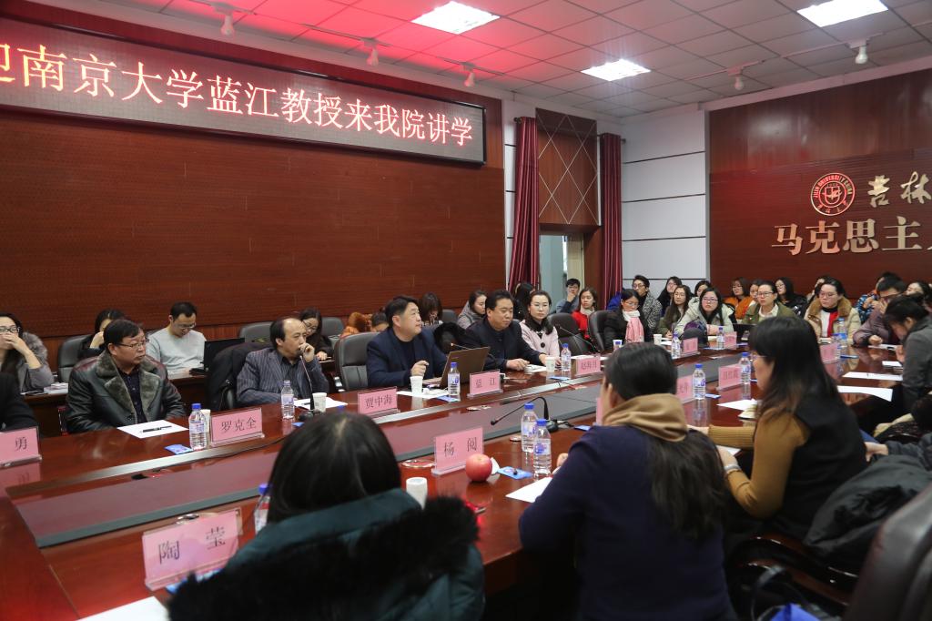 2017年12月21日下午,公司永利yl23411、中国特色社会主义理论体系研究中心、中国道路与中国化马克思主义协同创新中心与社会科学处共同邀请南京大学哲学系蓝江教授,为永利yl23411师生作了题为“当代马克思主义的研究范式”的学术讲座。