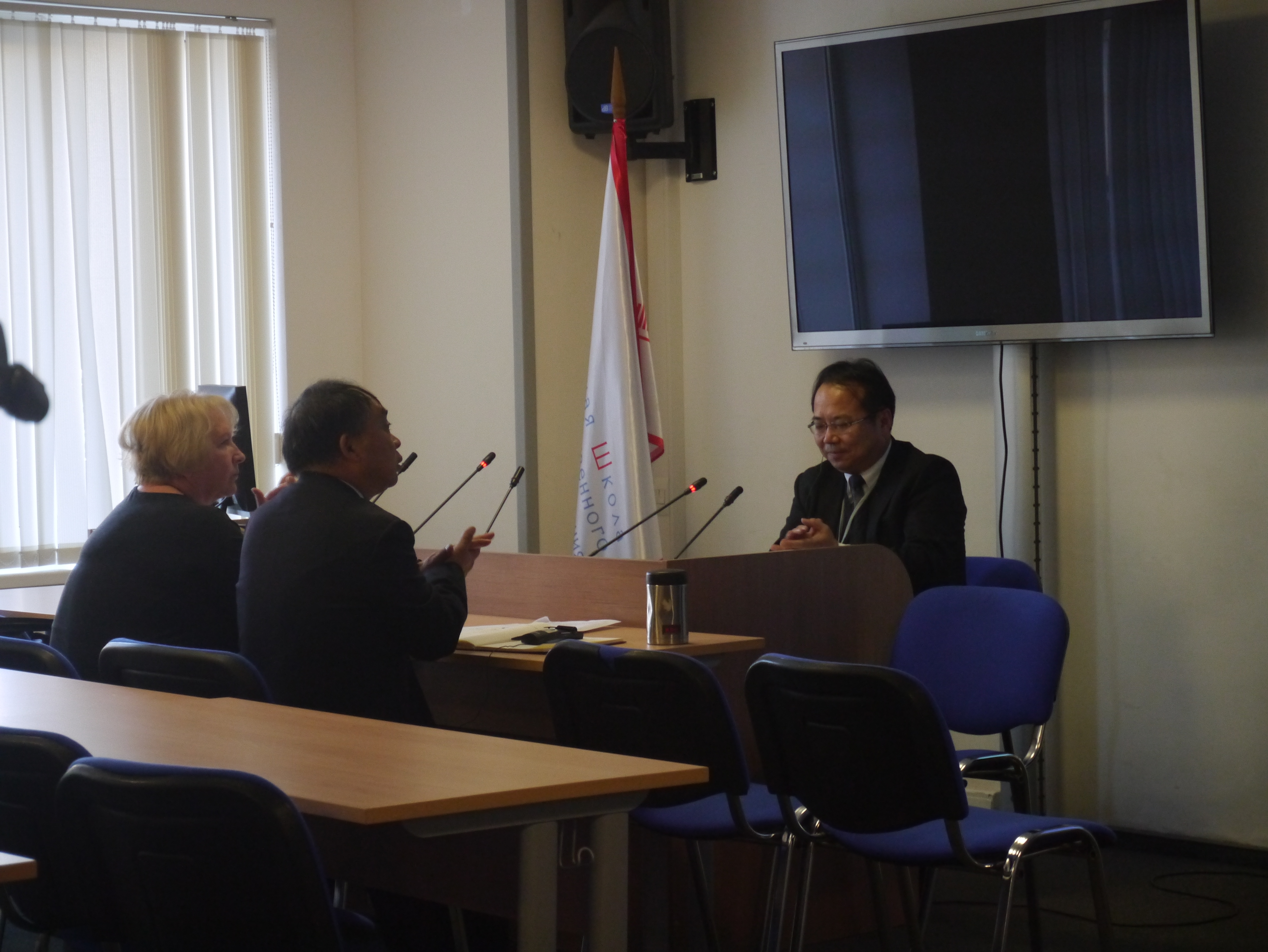 会议期间,韩喜平教授还作为特邀嘉宾与中国社科院马克思主义研究院经理、书记邓纯东教授等3人接受了俄罗斯宏观意识科公司电视台的采访,就文化多样性与文化保护等问题发表了自己的看法,同时与俄罗斯学者进行了广泛而深入的交流。