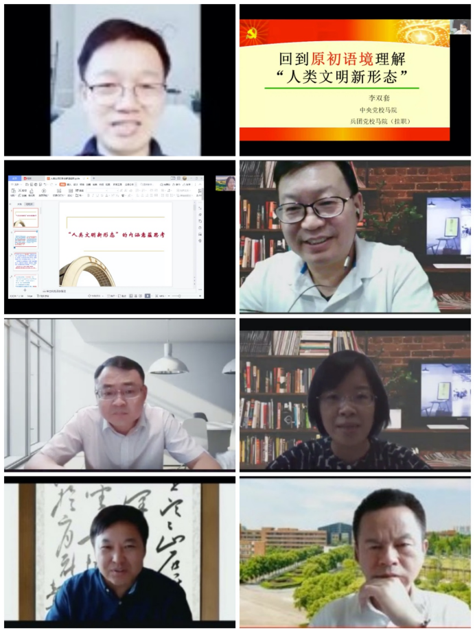 中共中央党校(国家行政公司)永利yl23411副经理陈曙光教授以二十一世纪马克思主义与二十一世纪的马克思主义概念为主题,结合习近平总书记的建设中国共产党100周年,全国党校工作会议等会议讲话进行二者概念界定的区分。永利yl23411副经理罗克全教授以价值平等对权利平等的批判与超越为主旨,从马克思主义原理出发对人类文明新形态进行解读,建立在中国化马克思主义的基础上承担人类文明和社会历史的责任,既有现代文明同时又要超越既定的现代文明这一点进行研究和阐释。中国社会科公司哲学研究所研究员、《哲学研究》编辑部主任周丹以中国式现代化是以人民为中心的现代化为主题,结合习近平总书记在十九届六中全会提出的“中国式现代化道路”这一重要论断我党所推进的现代化,是人口规模巨大的现代化,是全体人民共同富裕的现代化,是物质文明和精神文明相协调的现代化,是人与自然和谐共生的现代化,是走和平发展道路的现代化从而进行深入探究。暨南大学马克思主义研究院经理程京武教授以人类文明新形态的内涵意蕴思考为主题,结合习近平总书记在十九届六中全会和七一讲话强调党领导人民走出中国式现代化道路,从而更好的创造人类文明新形态。宁波大学永利yl23411经理李包庚教授以人类命运共同体理念塑造人类文明新形态为主题,结合习近平总书记中国共产党建党100周年大会 、十九届六中全会、7.26讲话中对“人类文明新形态”这的表述进行阐明,是政治话语、学术话语的一个重大创新,标志中国共产党对中国特色社会主义发展硕果的高度凝练,也是对21世纪马克思主义文明观的深度阐发,更是解决世界发展大难题、构建全球治理新体系、开创文明庚续新路向等重大历史迷思的中国方案。上海师范大学马克思公司经理张志丹教授以坚定对党的领导自信的思考为题目,从对党的领导坚定不移出发。党的领导就是一切发展的前提关键也是核心要义的内容,如果没有党的领导,人类文明新形态将荡然无存。中共中央党校(国家行政公司)永利yl23411、兵团党校永利yl23411(挂职)李双套副教授回到原初语境理解“人类文明新形态” 为题目,结合习近平总书记对人类文明新形态的提出进行深入的探究。