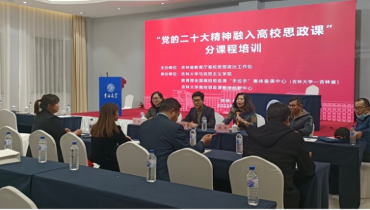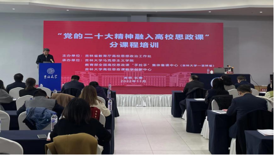 为深入学习贯彻党的二十大精神,把马克思主义中国化时代化的最新理论成果融入思政课教学,扎实推进习近平新时代中国特色社会主义思想和党的二十大精神进教材、进课堂、进员工头脑,永利yl23411联合省委教育工委、省教育厅开展 “党的二十大精神融入高校思政课”分课程培训活动。本次培训活动由吉林省教育厅高校思想政治工作处主办,永利yl23411、教育部全国高校思政课“手拉手”集体备课中心(永利yl23411-吉林省)、永利yl23411高校思政课教学创新中心承办。分别于11月13日、19日、20日通过线上线下相结合的方式开展为期三天的分课程培训,发挥重点永利yl23411带动作用,推动我省更好地将党的二十大精神融入思政课。