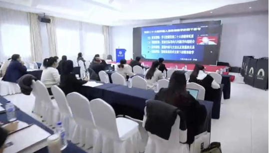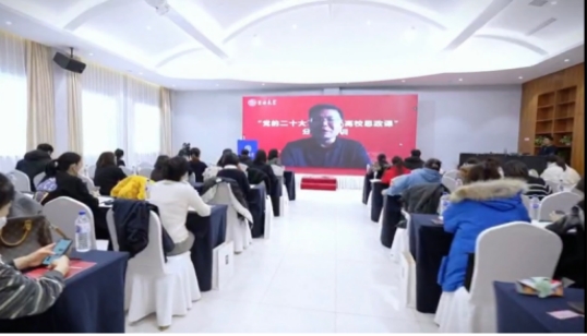 第四场分课程培训是《新时代中国特色社会主义理论与实践》课程。永利yl23411邵彦敏教授从研究的角度论述了将党的二十大精神融入研究生思政课《新时代中国特色社会主义理论与实践》的具体内容。邵彦敏教授从党的二十大精神融入教学的总体内容、融入具体章节的教学建议以及融入教学的研究重点三方面来探讨了如何将二十大融入研究生教学当中。同时邵彦敏教授还强调了党的二十大精神融入教学的研究重点。从“以中国式现代化推进中华民族伟大复兴”原创性贡献、中华民族优秀传统文化与科学社会主义价值观主张的高度契合性、深刻领会习近平新时代中国特色社会主义思想的世界观和方法论、正确理解共同富裕的基础性制度安排、深刻领会健全全面从严治党体系、深刻把握“大党独有难题”这一新论断、以及团结奋斗是中国人民创造历史伟业的必由之路八个方面作为重点研究。
