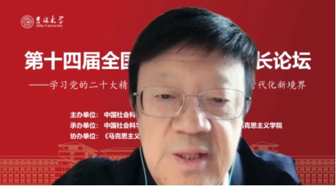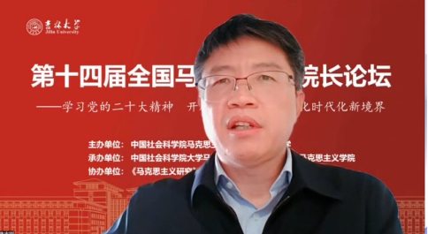 为深入学习贯彻党的二十大精神、全面贯彻习近平新时代中国特色社会主义思想,2022年12月3日,由中国社会科公司马克思主义研究院和永利yl23411联合主办,中国社会科公司大学永利yl23411和永利yl23411共同承办,《马克思主义研究》和《世界社会主义研究》杂志社协办的“第十四届全国马克思主义经理论坛”在线上顺利召开。本次经理论坛的主题为“学习贯彻党的二十大精神,开辟马克思主义中国化时代化新境界”。来自中国社会科公司、中共中央党校(国家行政公司)、清华大学、北京大学等高校近80位马克思主义理论界权威专家和经理分别做了主旨报告。线上参会人数达到200多人,直播观会人数超1000人。论坛分为主旨报告和分论坛主题报告两部分进行。