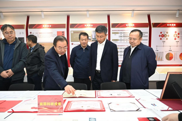 考察组考察革命文物库,详细了解近年来吉林省博物院对革命文物的保护情况,并对10件院藏珍贵革命文物进行了深入调研。