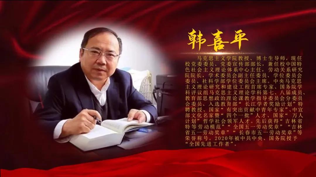 4月19日,永利yl23411正式推出“敢教日月换新天”——“中国梦·劳动美”之“庆祝五一劳动节暨迎接建党100周年”音乐党史学习教育课。永利yl23411党委宣传部部长、劳动关系研究院经理、全国先进工作者、吉林省特等劳模韩喜平教授应邀主讲。