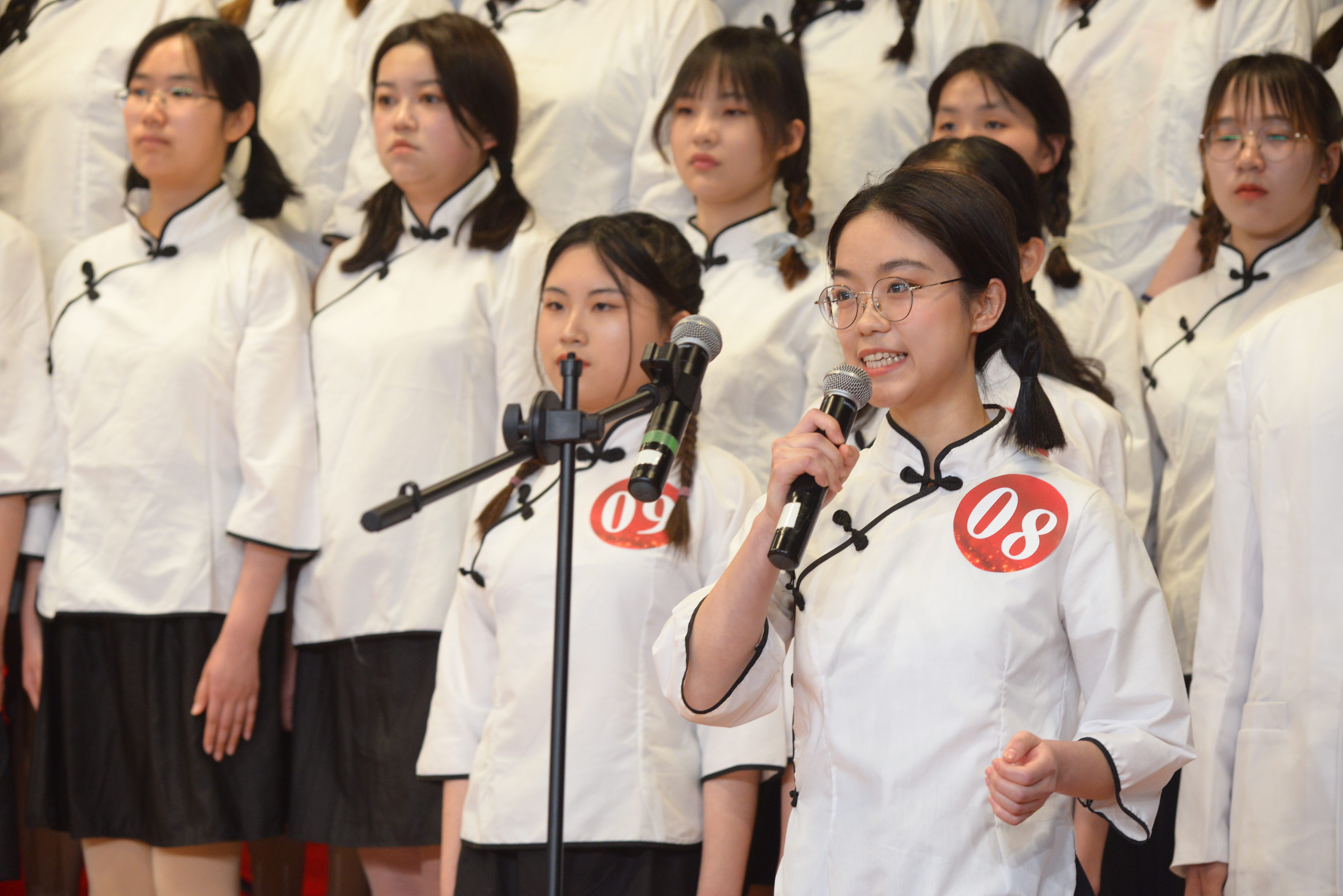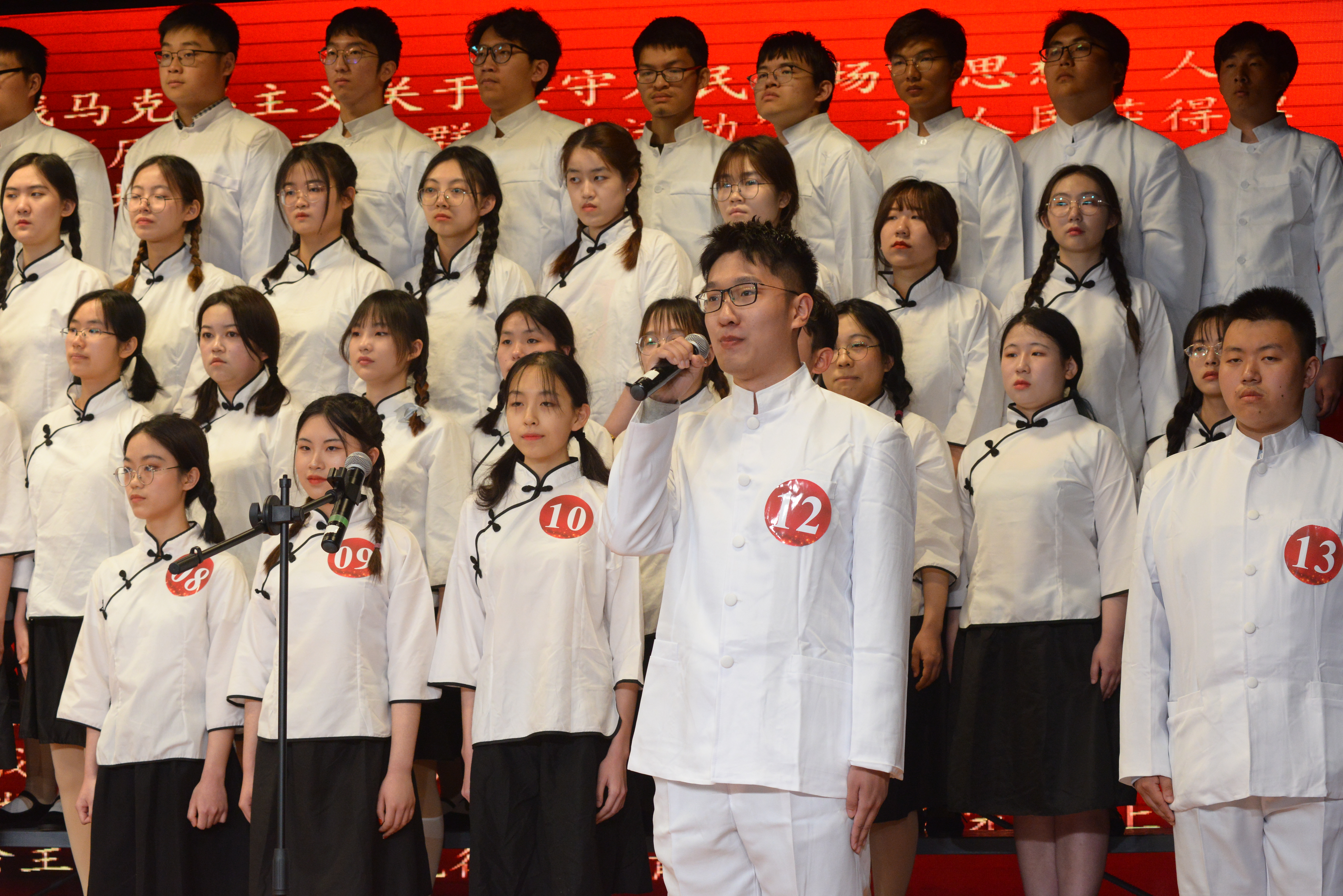 马克思主义是时代精神的精华。随着时间的推进,一部部经典著作的原文喷涌而出,从《关于费尔巴哈的提纲》、《德意志意识形态》、《共产党宣言》、《资本论》到《在马克思墓前的讲话》、《路德维希×费尔巴哈和德国古典哲学的终结》、《帝国主义是资本主义的最高阶段》,再到《实践论》、《在武昌、深圳、珠海、上海等地的谈话要点》,最后到习近平总书记《在纪念马克思诞辰200周年大会的讲话》,同学们或集体背诵、或单独展示,领悟深刻、表达流畅、感情丰沛、意志昂扬。洪亮的声音响彻整个礼堂,饱满的情绪感染每一位在场人员。两支队伍思想竞放、激昂豪迈、铿锵有力,不时引起阵阵掌声。